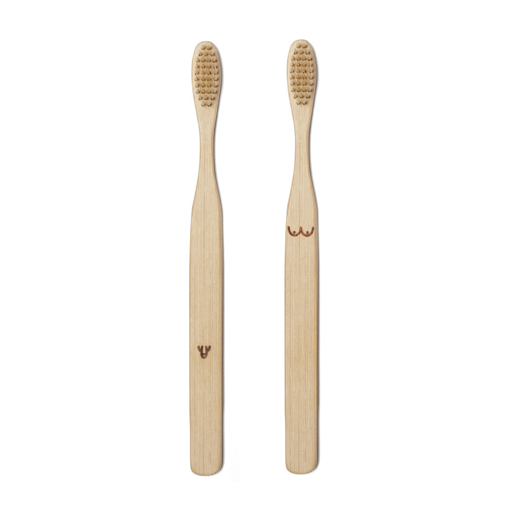 Във времената на изострени дискусии за третия пол този комплект от екологични и антибактериални четки за зъби застава на страната на традиционалистите, обозначавайки полът с най-характерното и с малко хумор.