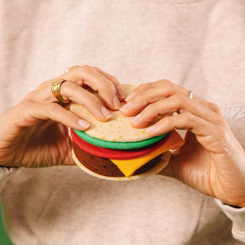 Зарадвай фен на чийз бургерите с весели чорапи Cheese Burger. И знаеш ли какво е най-хубавото? Чорапите са с 0 калории и 100% щастие!