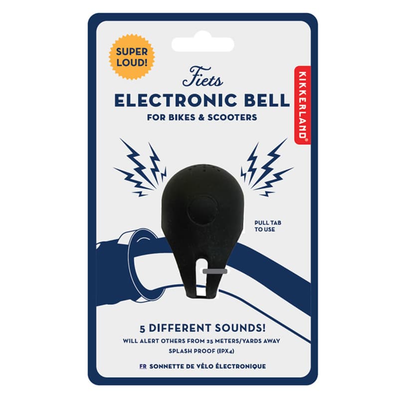 Звънец за колело, който издава разнообразни весели звуци, за да предупреди участниците в движението! Идеален за всяко колело, електронният звънец се захранва на батерии и не заема много място. Взе ли своя?