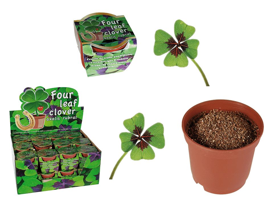 Поднесете четирилистна детелина за отглеждане в саксия.Едно оригинално послание за щастие и късмет.