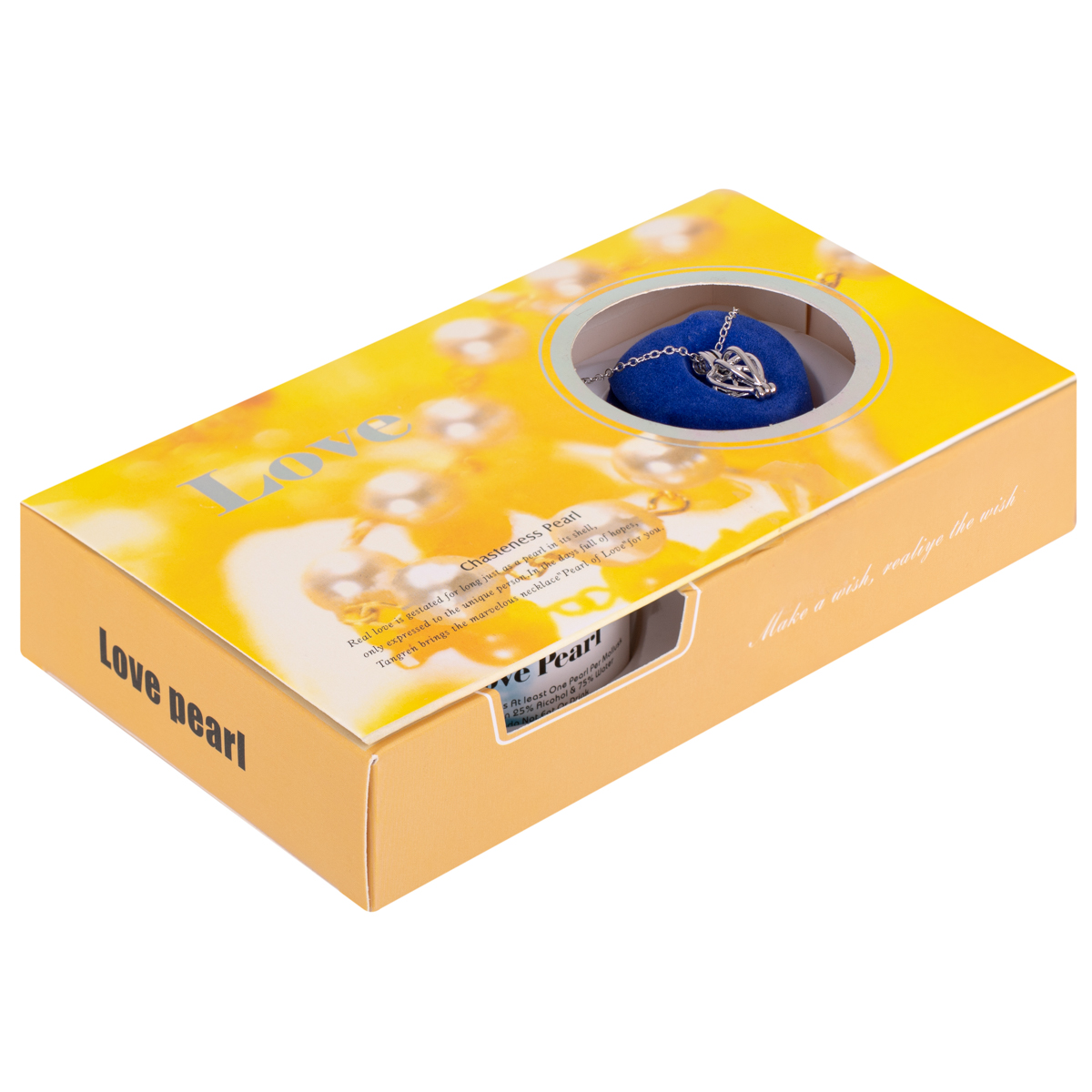 Комплектът съдържа – малък кен с мида и перла вътре, медальон за поставяне на перлата с верижка за окачване на шия.