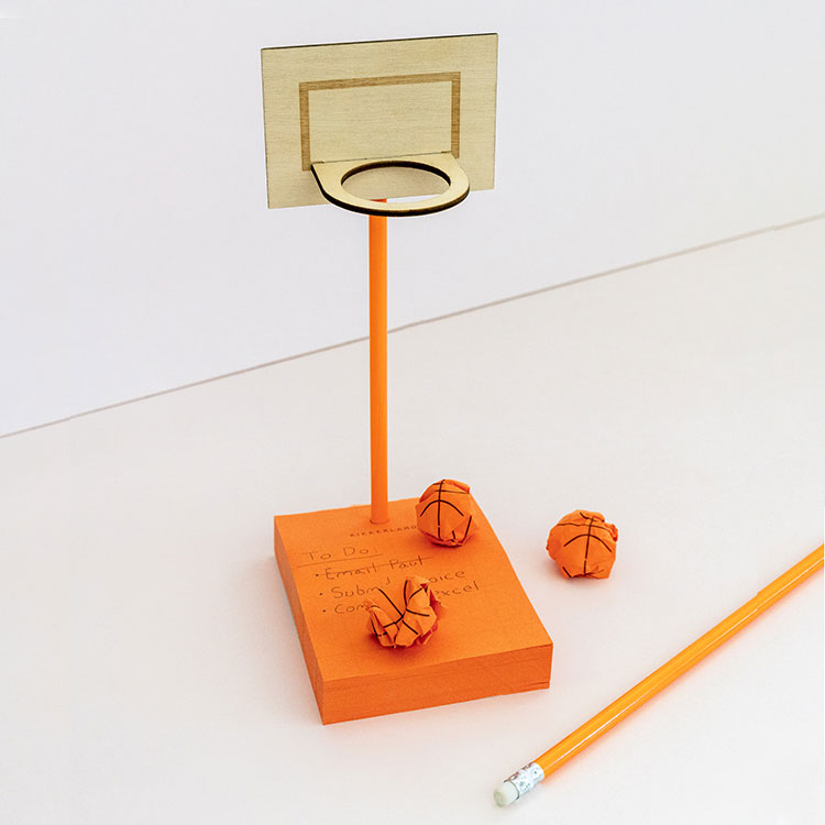 Запиши бележка или задача и когато е изпълнена, откъсни листчето и го смачкай, за да го превърнеш в топка. Закачи коша към молива и си направи баскетболно игрище. Вече играта на мини баскетбол може да започне!