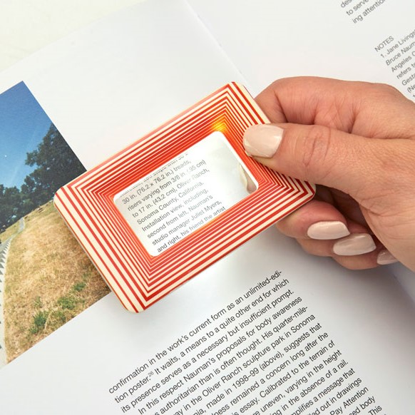 Лупата е с размер на кредитна карта и удобно може да се съхранява в джоб, за да бъде винаги под ръка.