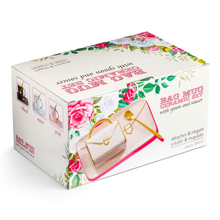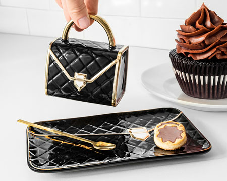 Подари стилна чаша Дамска чанта с чинийка и лъжица, идеална за жена, която обича да пие кафе или капучино със стил!