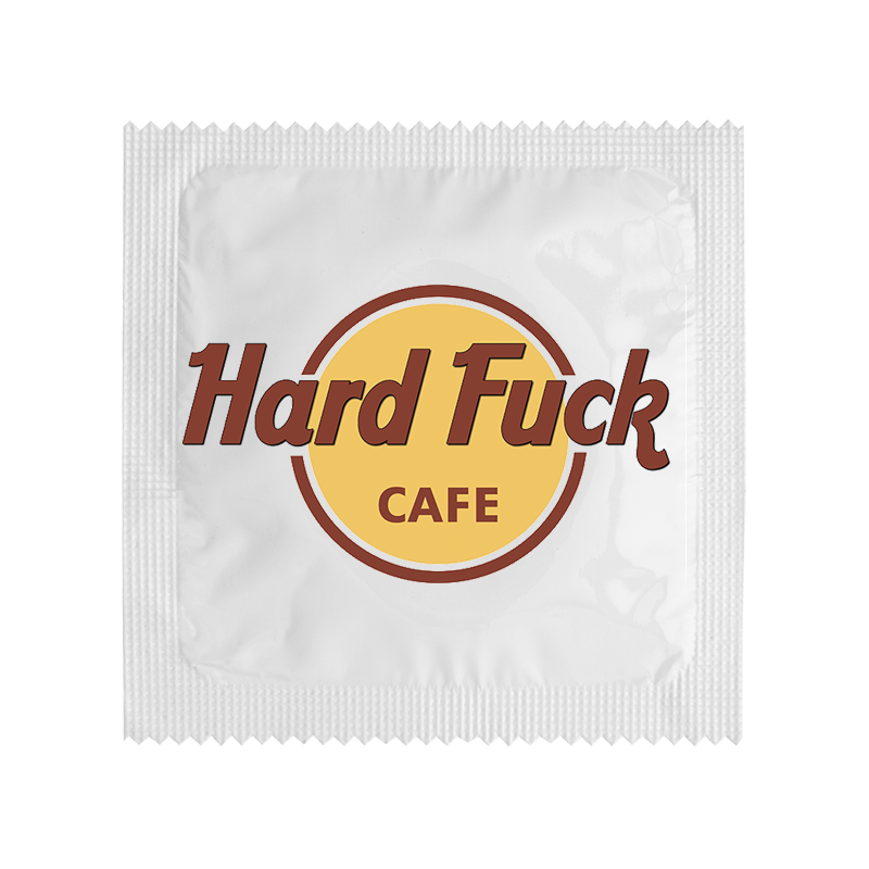 Презерватив със забавно послание „Hard fuck cafe“