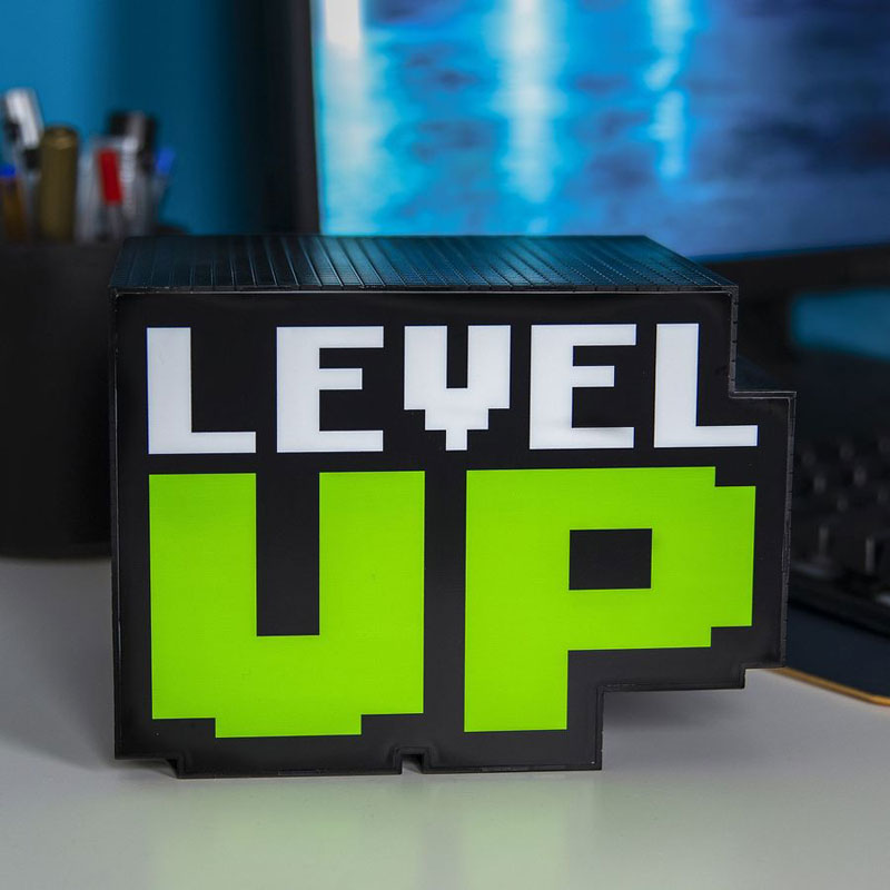 Подари страхотна геймърска лампа със звук Level Up! Издава звук като я включиш, свети супер яко в зелено и бяло и идеален подарък за геймър, запален по видеоигри, а защо не и за всеки, който иска да Вдигне Нивото!