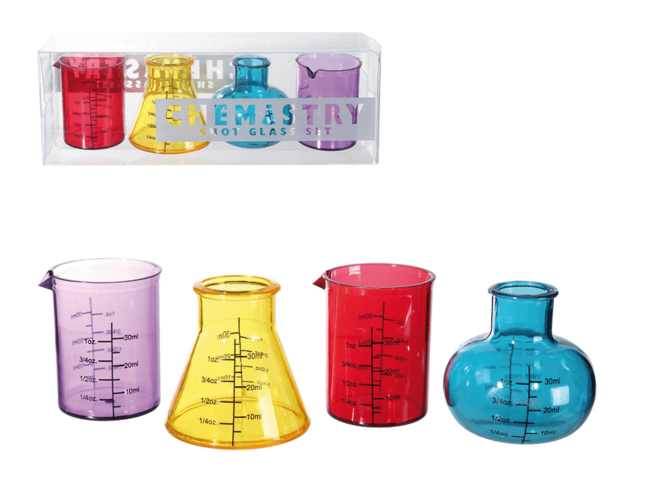 Чаши за шот с тематичен и забавен дизайн. В четири различни цветове и форми на колби, този забавен комплект за чаши за шот допълнително вкарва заряд в купона. Всички знаем как най-интересните шотове са направени от някакви откачени комбинации на алкохол, така че какво по-тематично от тези чашки за шотове, които ще Ви върнат обратно в училище. Тогава не слушахте в час по химия и си мислехте как това няма да Ви е полезно в живота. Все още ли мислите така?