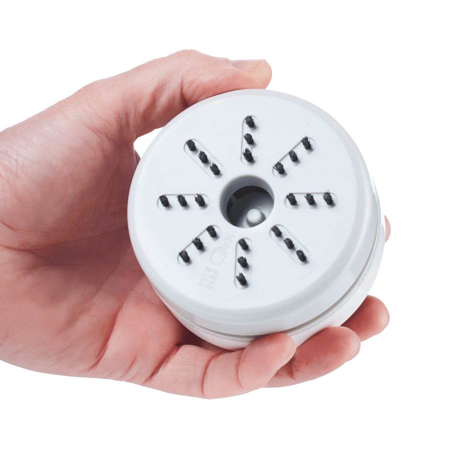 Работи с две АА батерии или се презарежда посредством USB-кабел.