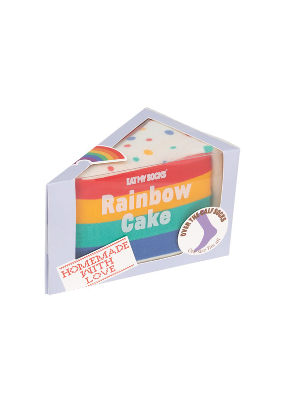Свежи чорапи за настроение на торта с дъга. Подари настроение с този оригинален подарък и ще смаеш своите приятели!