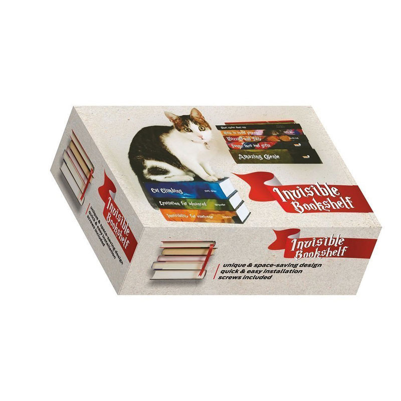 Поставя се книга върху нея като долната корица покрива лавицата и се захваща за две малки зъбчета, правейки лавицата невидима.