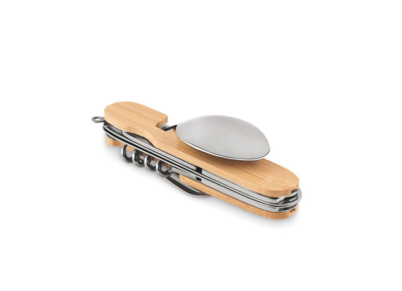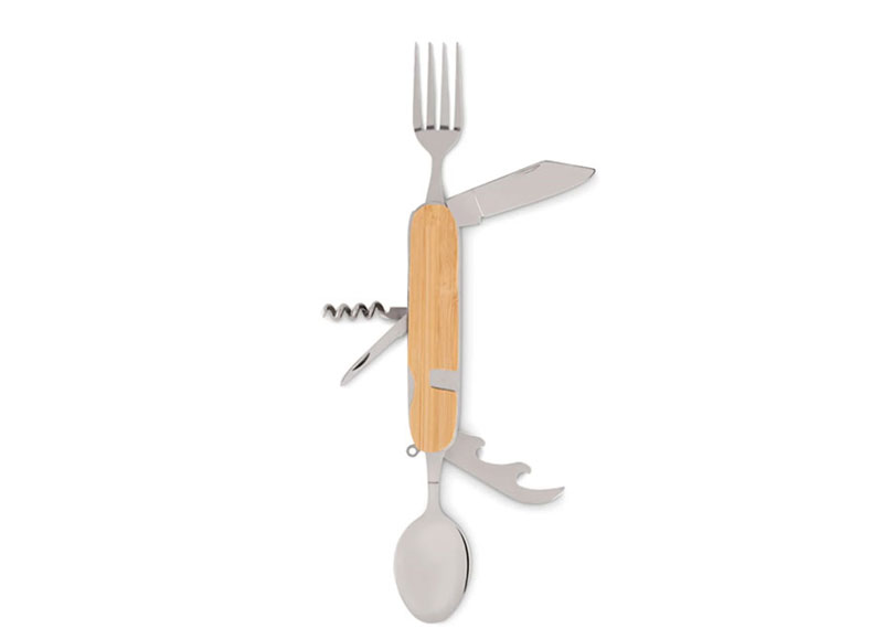 Удобство на път и в планината – джобно ножче с прибори за хранене – нож, лъжица, вилица, отварачка и тирбушон в едно!