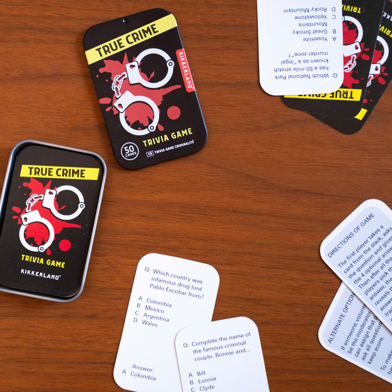 Тествай колко знаете с приятели с Тривиа игра с въпроси Престъпление! Подари забавна вечер на човек, който обича да печели и знае много по тази тема!