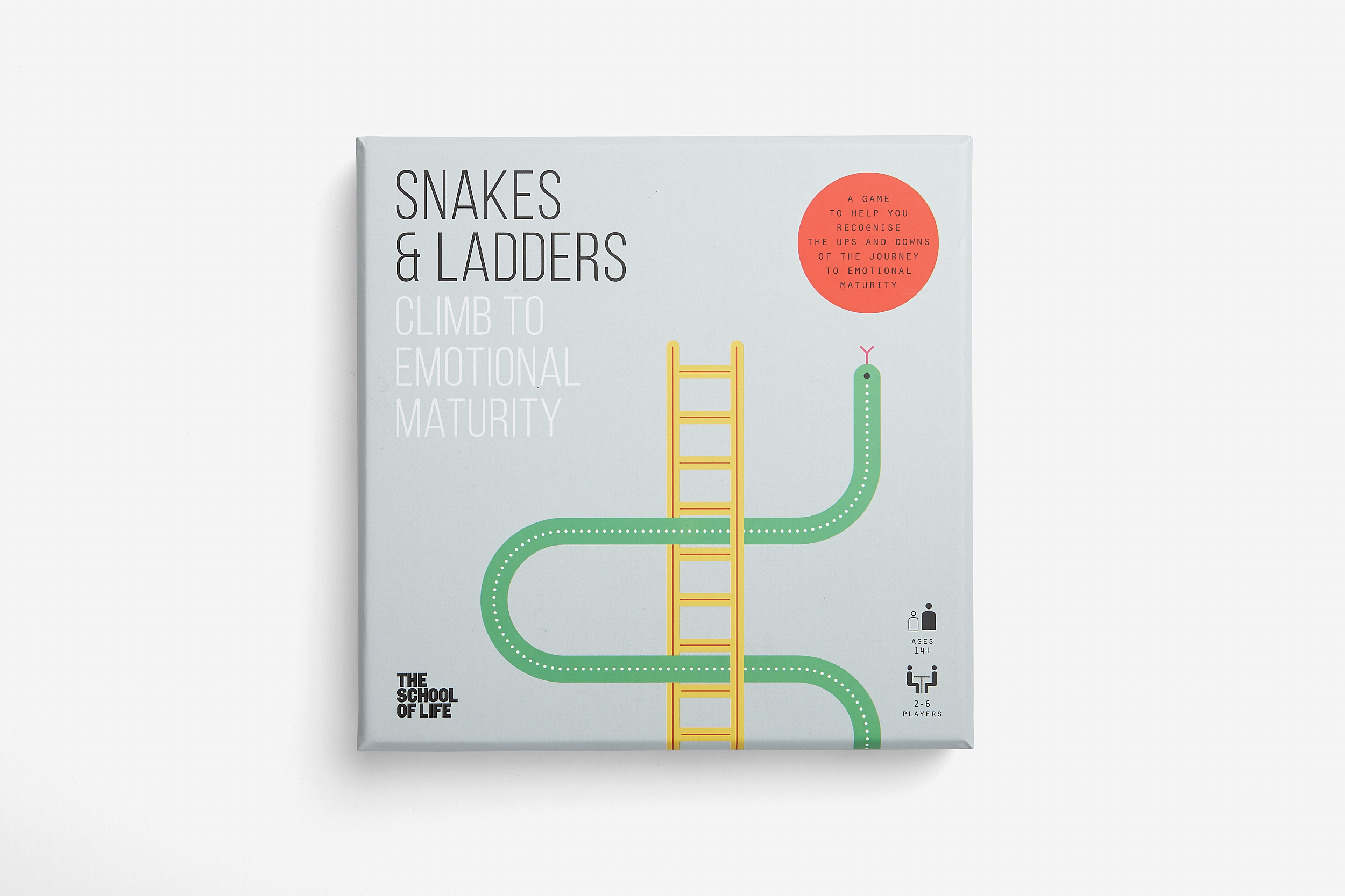 The School of Life са взели тази класическа игра на „Snakes and Ladders“ (прев. „Змии и Стълби“) и са я превърнали в прекрасна игра за емоционалния живот: „Стълбите“ в случая представляват всички онези моменти, в които сте се почувствали като истински зрели човешки същества, „Змии“ – те пък представляват онези моменти, когато сте се държали, противно на добрия разум, по един наистина неудачен и детински начин или като някакво разлигавено и тръшкащо се лапе. Където попаднете на игровата дъска, теглите съответната карта „Змия“ или „Стълба“, която очертава хумористично и с доза мъдрост съставките за емоционалната зрялост като Ви подтиква да разкриете подобни Ваши лични прозрения от Вашия живот. Играейки, Вие се забалявате, научавате неусетно повече как да продължите по тази пътека наречена „порастване“, която в една крайна сметка, както и самата игра подсказва, е нещо, което всички ние така и не успяваме да усъвършенстваме.