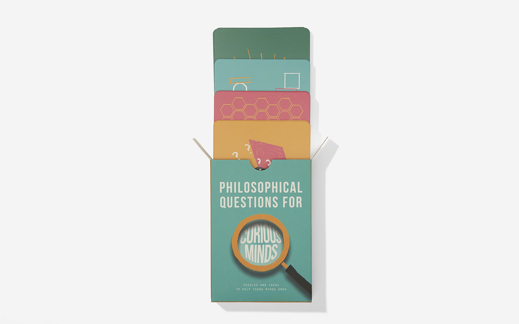 Тази игра е интересна, както за малки, така и за големи. Използвайте го, за да предизвикате интересни дискусии с родените философи – децата. Естествено, за да изкарате най-доброто от тяхното мислене, ще е хубаво да ги заредите с едни от най-мащабните и разширяващи мисълта въпроси. Това е тесте с едни от най-проницателните, базирани върху най-големите философски главоблъсканици въпроси, които със сигурност ще предизвикат оживени, сърдечни и пленителни разговори сред семейство и приятели. Не са Ви нужни предварителни знания, само любознателност.