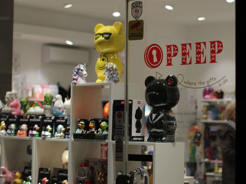 „Peep” (“Пийп”), означаващо “поглеждам крадешком”, е често срещана реакция в хората, които минават покрай витрините ни. Да надникнеш в магазините с усмивка е неизбежно. По рафтовете събираме пъстра колекция от подаръците, които разказват вашите тайни, истории и послания с чувство за хумор и топлота.